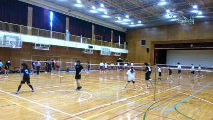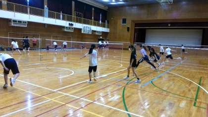 今日(8月19日)は、都島区にある大阪市立友渕中学校を招いて、合同練習を行いました。写真は一緒にウォーミングアップに取り組んでいる様子です。