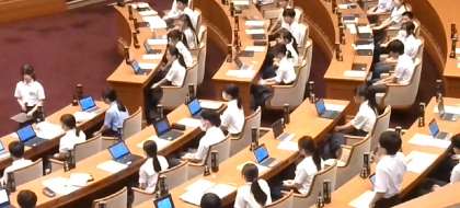今日(8月19日)の午後、大阪市市役所にある市会本会議場にて、「おおさか 子ども市会〜中学生市会〜」の本会議が開かれました。