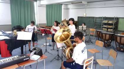 今日(9月22日)も、午前中に活動しました。2学期の発表に向けて、いろいろな曲に挑戦しています。