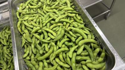 夏休み明け一回目の献立は焼きそばと枝豆です。枝豆はスチームオーブンで蒸したので、ふっくら甘く仕上がっています。
