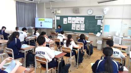 新しい英単語や英語表現の発音を丁寧に確認しています。