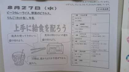 8月27日(水曜日)の給食です!