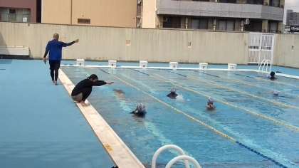男女ともプールで水泳の授業でした。まだまだ暑いので気持ちよさそうです。