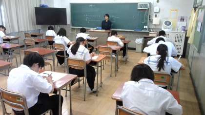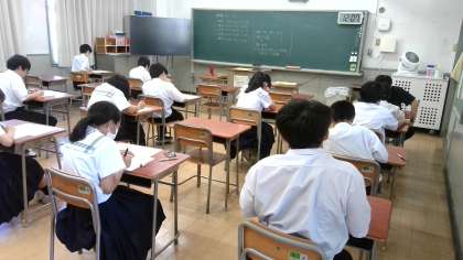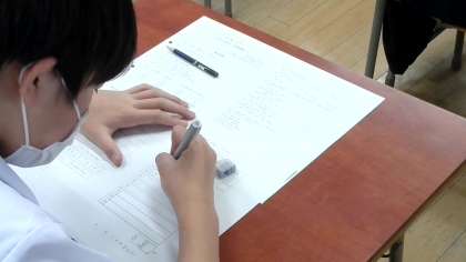 3時間目は「社会」、4時間目は「英語」のテストに取り組んでいます。