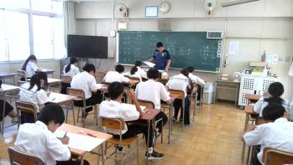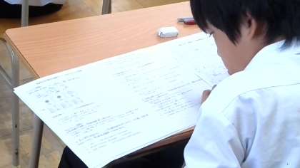 2年生も、3時間目は「社会」のテスト、4時間目は「英語」のテストに取り組んでいます。「英語」のテストではリスニング問題もありました。