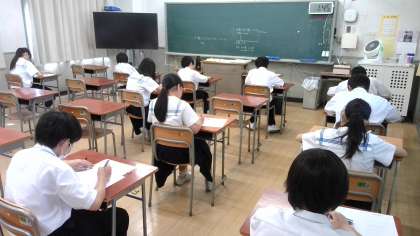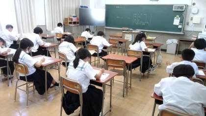 最後になる5時間目は、「数学」のテストに取り組んでいます。