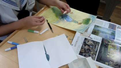 引き続き、教科書に掲載されている絵画の「模写」に取り組んでいます。