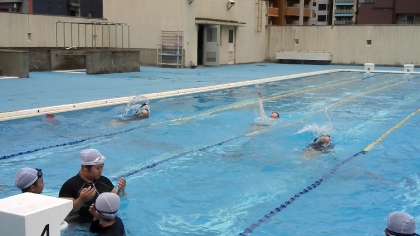男子は、バタフライ、女子は、背泳ぎに取り組んでいます。
