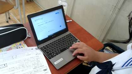 テスト自体は、今週の火曜日に行われましたが、学習者端末を使って、アンケートに取り組みました。