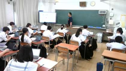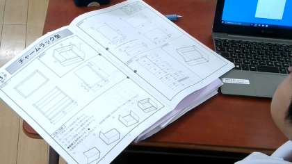 木材加工の実習で組み立てる「ブックスタンド」の作成マニュアルを学習者端末からダウンロードしています。