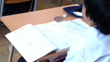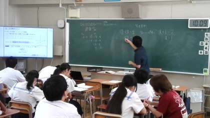 引き続き、一次関数のグラフと式の関係について学習しています。