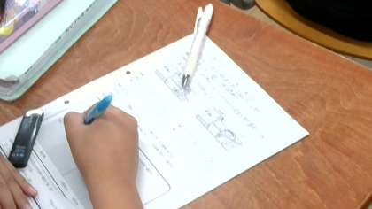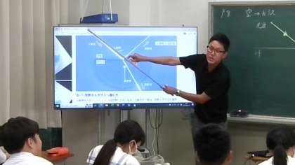 光がガラスや水を通るときに、どのように屈折するのかについて学習しています。