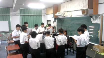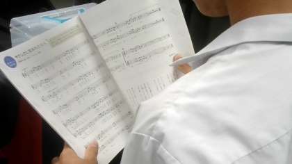 「ややしさに包まれたなら」という、アニメ「魔女の宅急便」のテーマソングをパート別に練習しています。