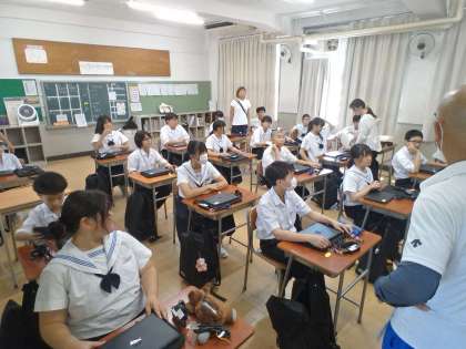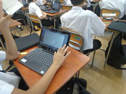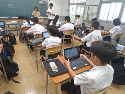 先週末に更新された学習者用端末のセットアップを、各クラスで行っています。