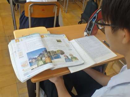 教科書の英文を何回も音読して、英語のリズムや響きを確認していきます。