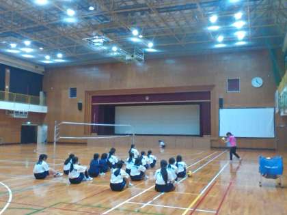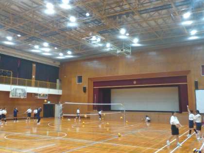 サーブの打ち方を学習し、実践練習に取り組んでいます。