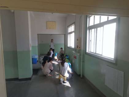 近くで1年生が授業中でしたが、先生方の注意をよく聞いて、静かに訓練に取り組んでいました。
