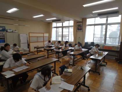 日本語指導が必要な生徒は、別室にて、時間延長・ルビうち問題・辞書持込の配慮を行ってテストに取り組んでいます。