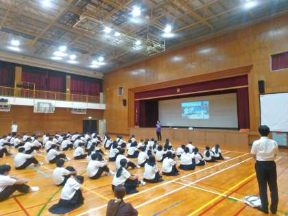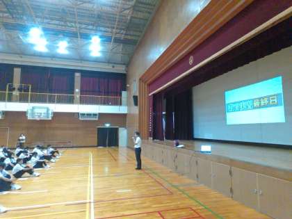 校長先生からは、午後に行われる「地震・津波を想定した避難訓練」に関するお話、生活指導の先生からは、「秋の交通安全運動」についてのお話がありました。