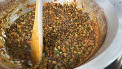 今日はハヤシライスです。上新粉を使ってとろみを付けた具沢山のハヤシライスは、ご飯がよく進む仕上がりになっています。