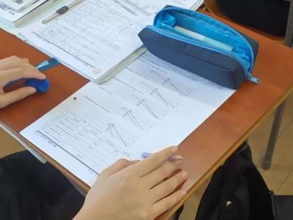 凸レンズの光の屈折を作図しながら、理解を深めています。
