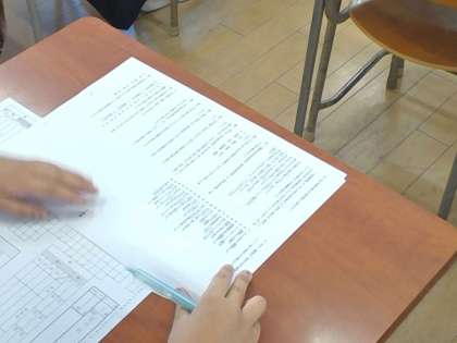1年生の1時間目は「国語」のテストに取り組んでいます。