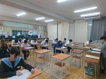 3年生も、2時間目は「社会」のテストに取り組んでいます。