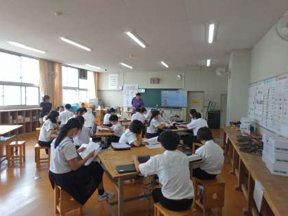先週行われた「2学期中間テスト」に関する解説を聞いています。