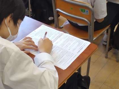 先週行われた「2学期中間テスト」の復習をしています。間違えたところを、しっかりと確認していきましょう。