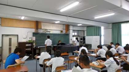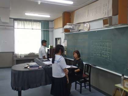 歌唱の実技テストが行われています。