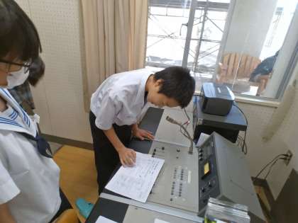 給食の配膳中に、毎日、保健委員さんが輪番で、その日の給食の献立や食材等に関する情報を放送室から流してくれています。