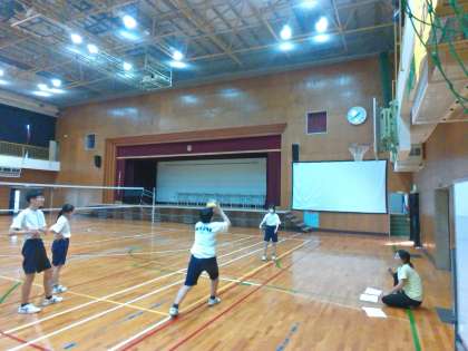 実技テストを行う班と、試合形式の練習を行う班に別れて、取り組んでいます。