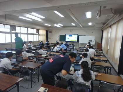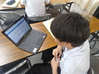 10月下旬に行う、大阪市英語力調査(GTEC)に向けて、学習者用端末を使って、練習問題に取り組んでいます。