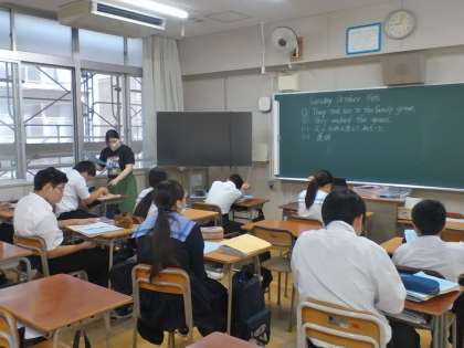新しく学習した英単語や英語表現について、その意味を一人ひとり確認しています。