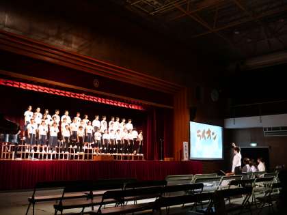震災学習、浪速区制100周年、大阪関西万博にちなんだ曲を披露してくれました。