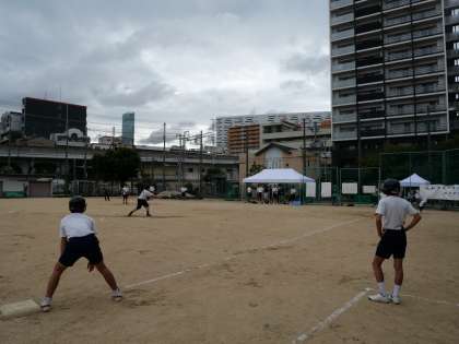 ソフトボールの1試合目は、日本橋中学校との対戦でした。