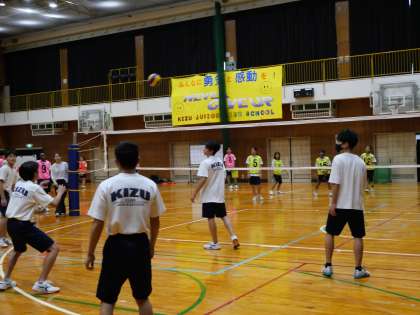 バレーボールの4試合目(最終戦)は、難波中学校の1・2年女子チームとの対戦でした。