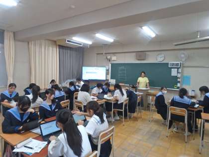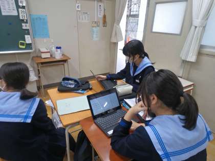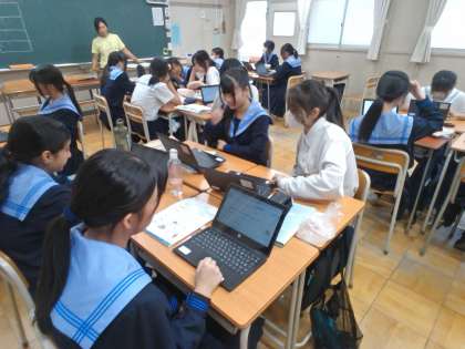「感染症」について、それぞれで調べたことを、学習者用端末で共有し合っています。