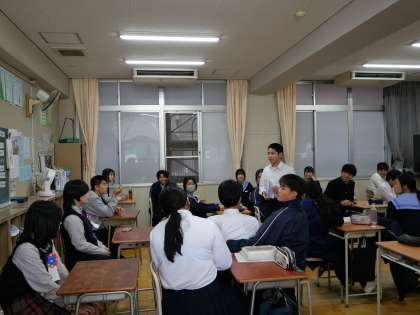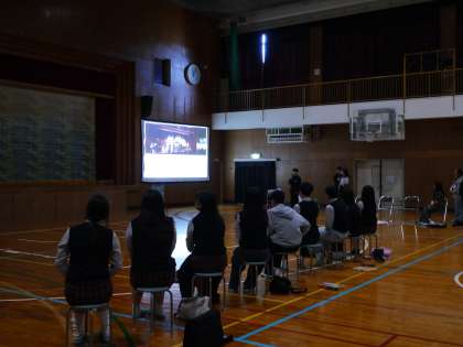 体育館で歓迎会を行ったり、教室で授業を受けたりしてもらいました。