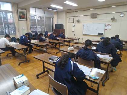 日本語指導を受けている生徒は、別室にて、「時間延長」「ルビうち問題」「辞書持込」の配慮を行って、テストに取り組んでいます。