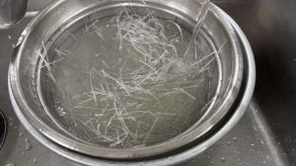 今日は鶏肉とはるさめのスープです。中華風のスープの旨みを春雨がたっぷり吸いこみます。