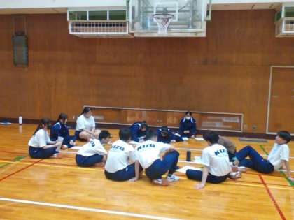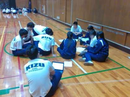 先日のダンス出前授業を受けて、グループごとにどのようなダンスを作っていくのかについて話し合いをしています。