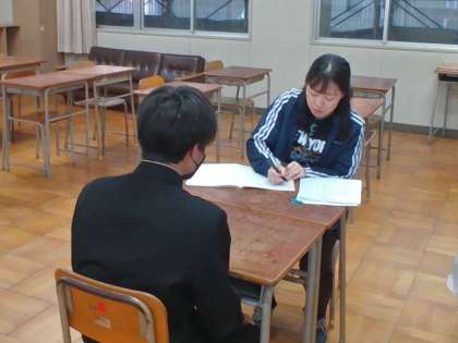 3年生では、来週からの「進路懇談」に先立って、担任の先生との教育相談に取り組んでいきます。