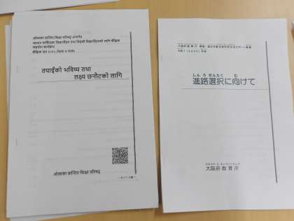 昨日の「中国語母語教室」に引き続き、本日は「ネパール語母語教室」が行われました。ネパール語を母語とする通級生が集まって、進路に関する説明を聞いて自分の進路を考えています。