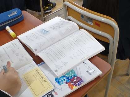 三角形の角度の特徴をいかした応用問題に取り組んでいます。