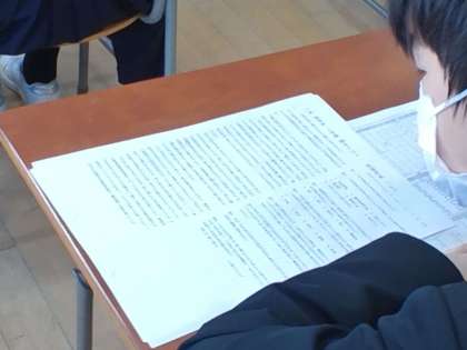 1年生の1時間目は、「国語」のテストに取り組んでいます。