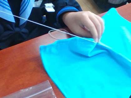 裁縫実習に取り組んでいます。何ができあがっていくのでしょうか?