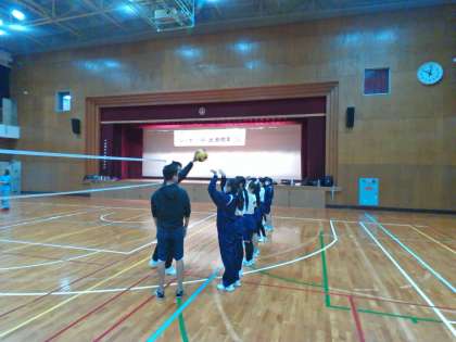 バレーボールの基本である「パス」の練習を丁寧に教えてもらっています。