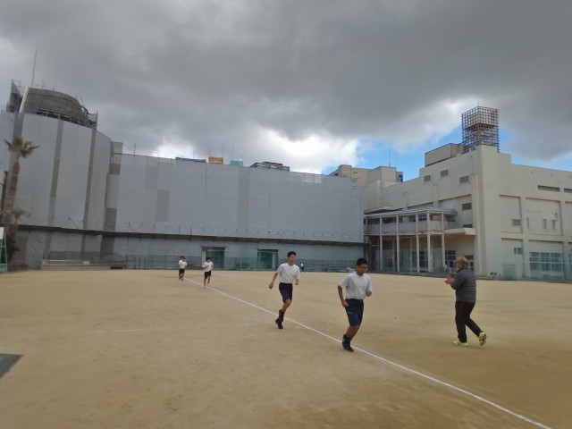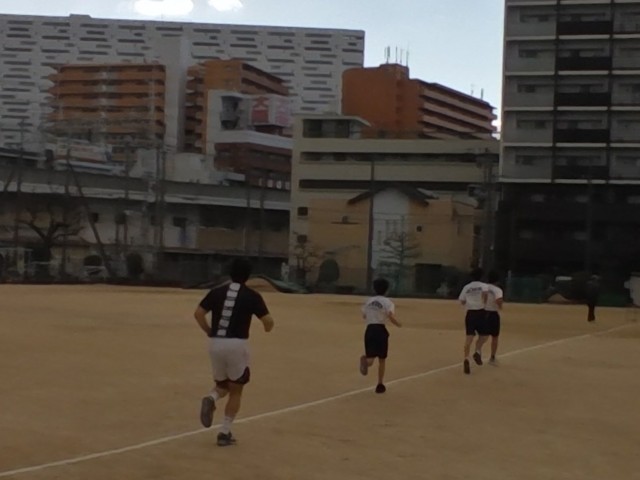 寒い中ですが、運動場で持久走に取り組んでいます。