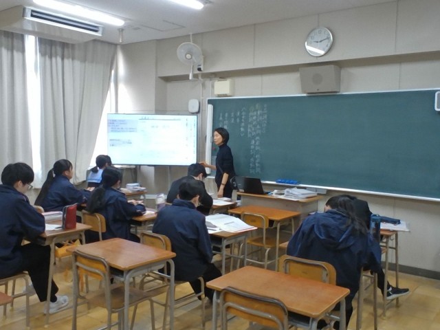 「生徒会選挙の推薦文」を教材に、文章の読み取りや表現方法などについて学習しています。
